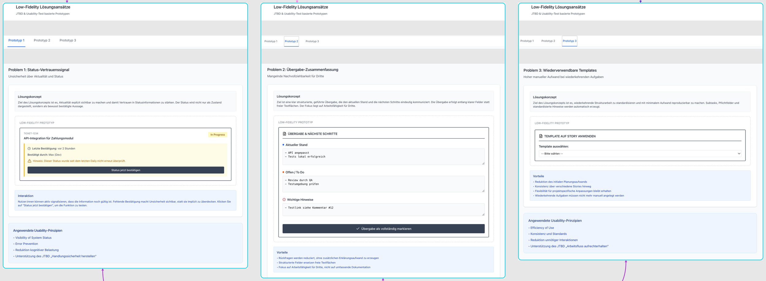 In this project, I analyzed how teams work with Jira in real project environments, with the objective of improving workflow clarity, status transparency, and collaboration efficiency. The work combined Jobs-to-Be-Done (JTBD) interviews with usability testing and low-fidelity prototyping to translate real user needs into practical solution concepts.